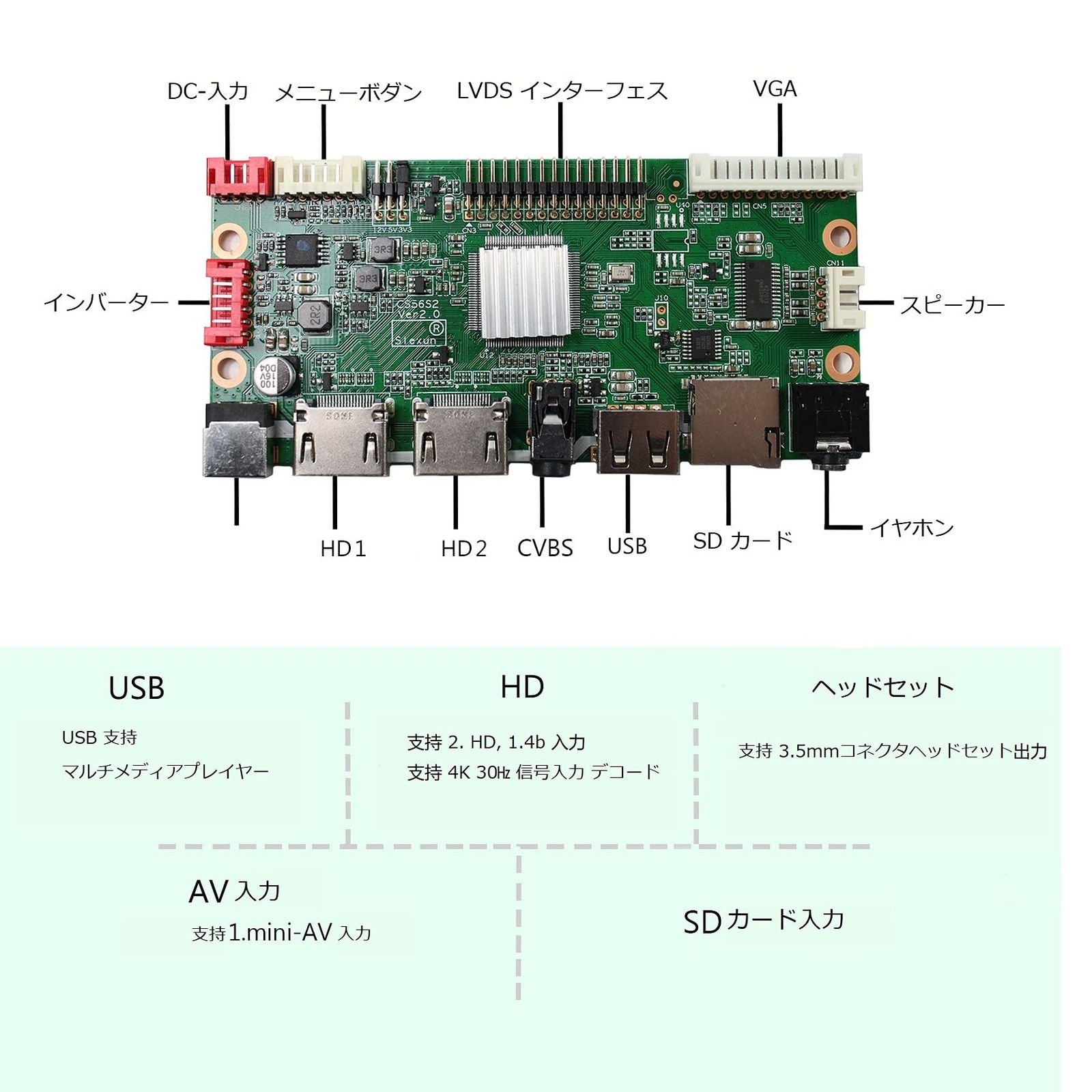 HD USB SD AV LCDコントローラ基板 VS56S2;基板サイズ約:107ⅹ50ⅹ15mm;マルチメディアはmp4支持;スピーカー支持
