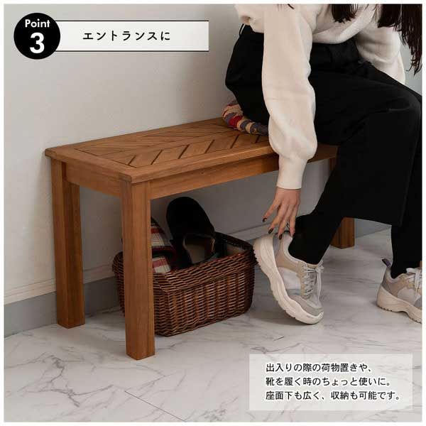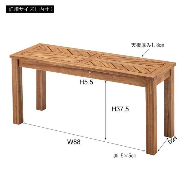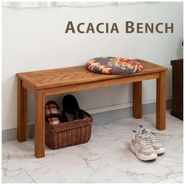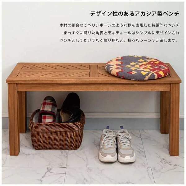 天然木(アカシア)のヘリンボーン調ベンチ(幅100cm)「W100×D36×H45cm」No.719