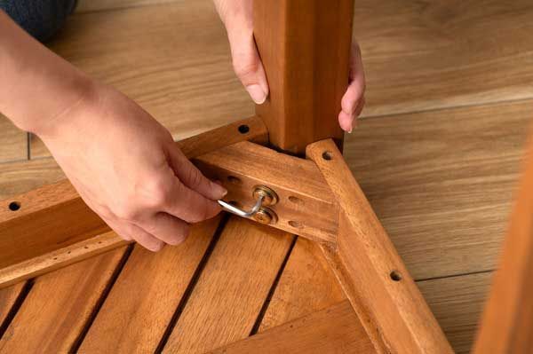 ●座面は、木材を組み合わせて作られたヘリンボーンのような柄が目を引きます。