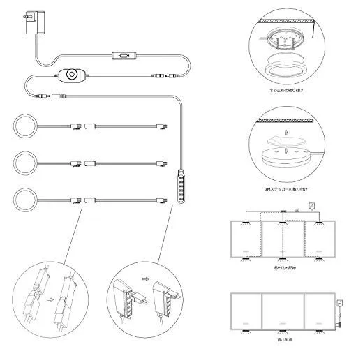アルミボディ - ランプ本体はアルミニウム製で、放熱性が良く、色の錆や変色を防ぐことができます。もし3M粘着テープを使って照明器具を固定する前に、食器棚の表面をきれいに拭いてください。
