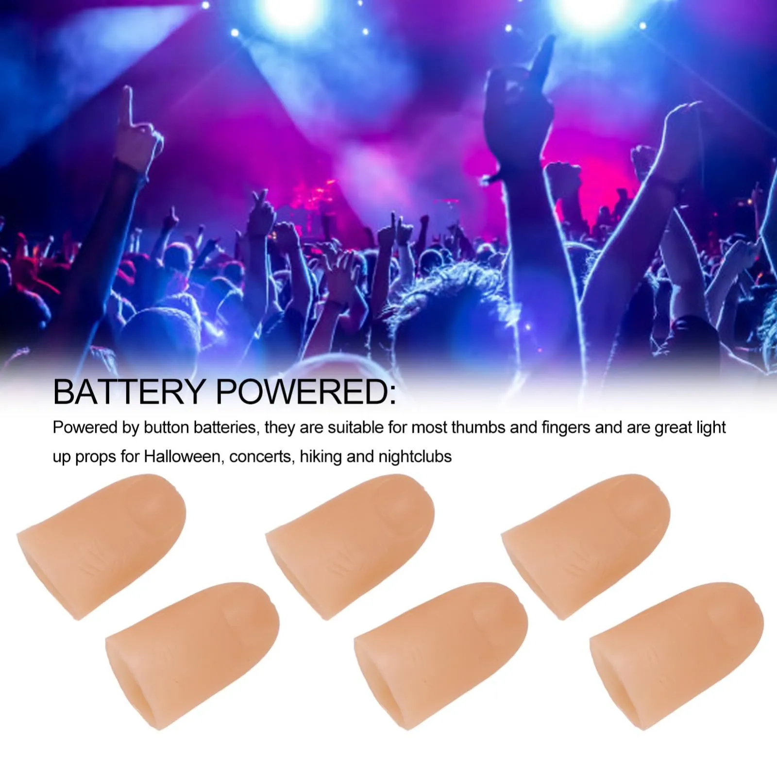 【電池式】これらのフィンガーライトはボタン電池で駆動しており、ほとんどの親指や指に適したサイズです。そのため、さまざまなシチュエーションで活躍することができます。ハロウィーンの装飾やコンサートでの光の演出、ハイキング中の安全確保、ナイトクラブでのライトアップ小道具としても最適です。使い捨ての電池を使用するため、電力不足の心配もなく、長時間にわたって使用することができます。