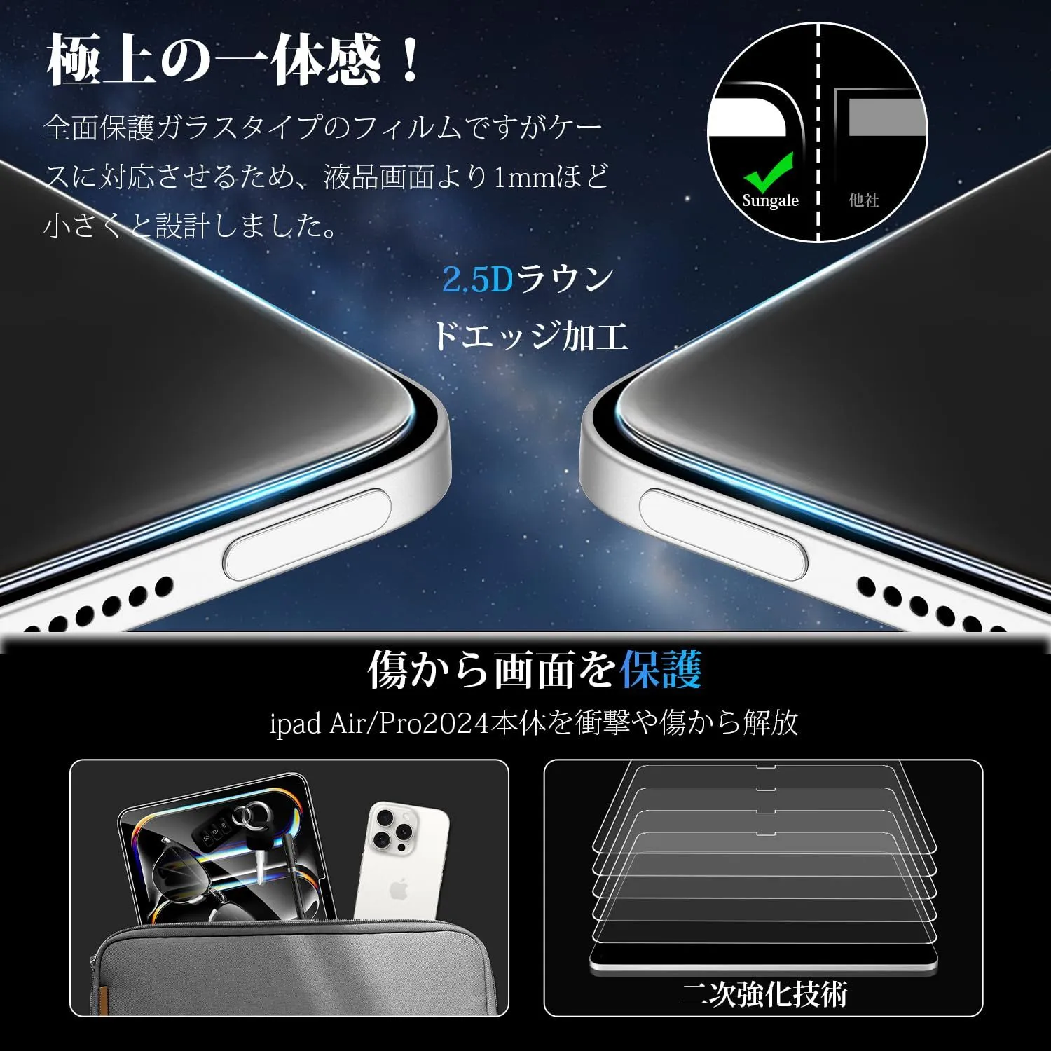 Sungale iPad Pro 11インチ フィルム 2025対応(M5) iPad Pro 11インチ 2025 ガラスフィルム ?化ガラス ipadプロ11インチ 2025 アイパッド プロ 11インチ 保護フィルム 液晶保護フィルム 全面保護 素材旭硝子製 衝撃吸収 指紋防止 ケース対応 iPad Pro 11 インチ 2025/2024 対応 フィルム