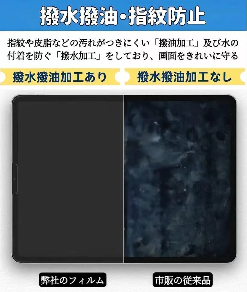 ?指紋防止 :フィルム表面の指紋防止加工により指紋や汚れが残りにくくなります。水や汚れ、油分をはじくため布などを用いて拭き取るだけで、画面をきれいな状態に保ちます