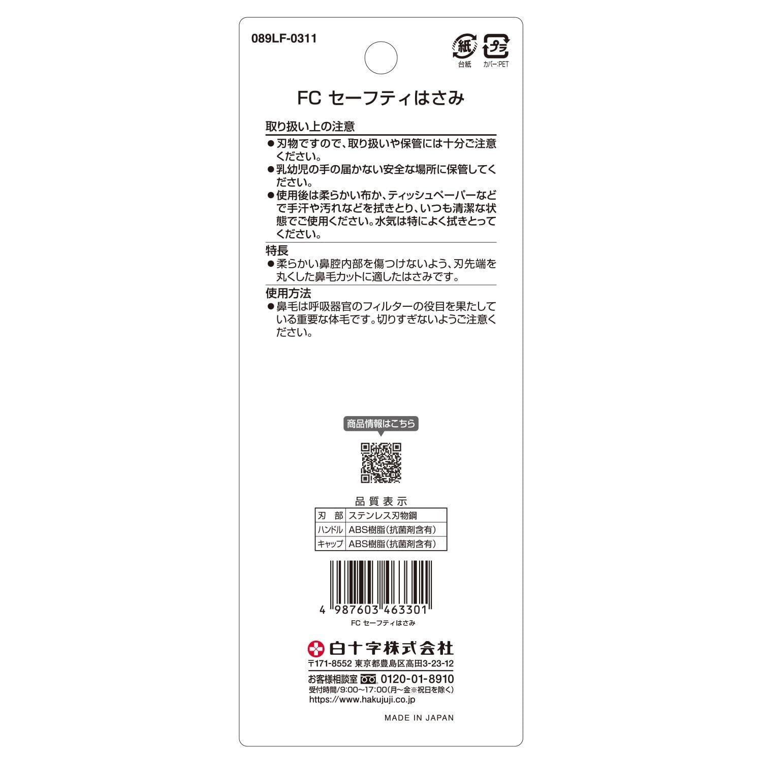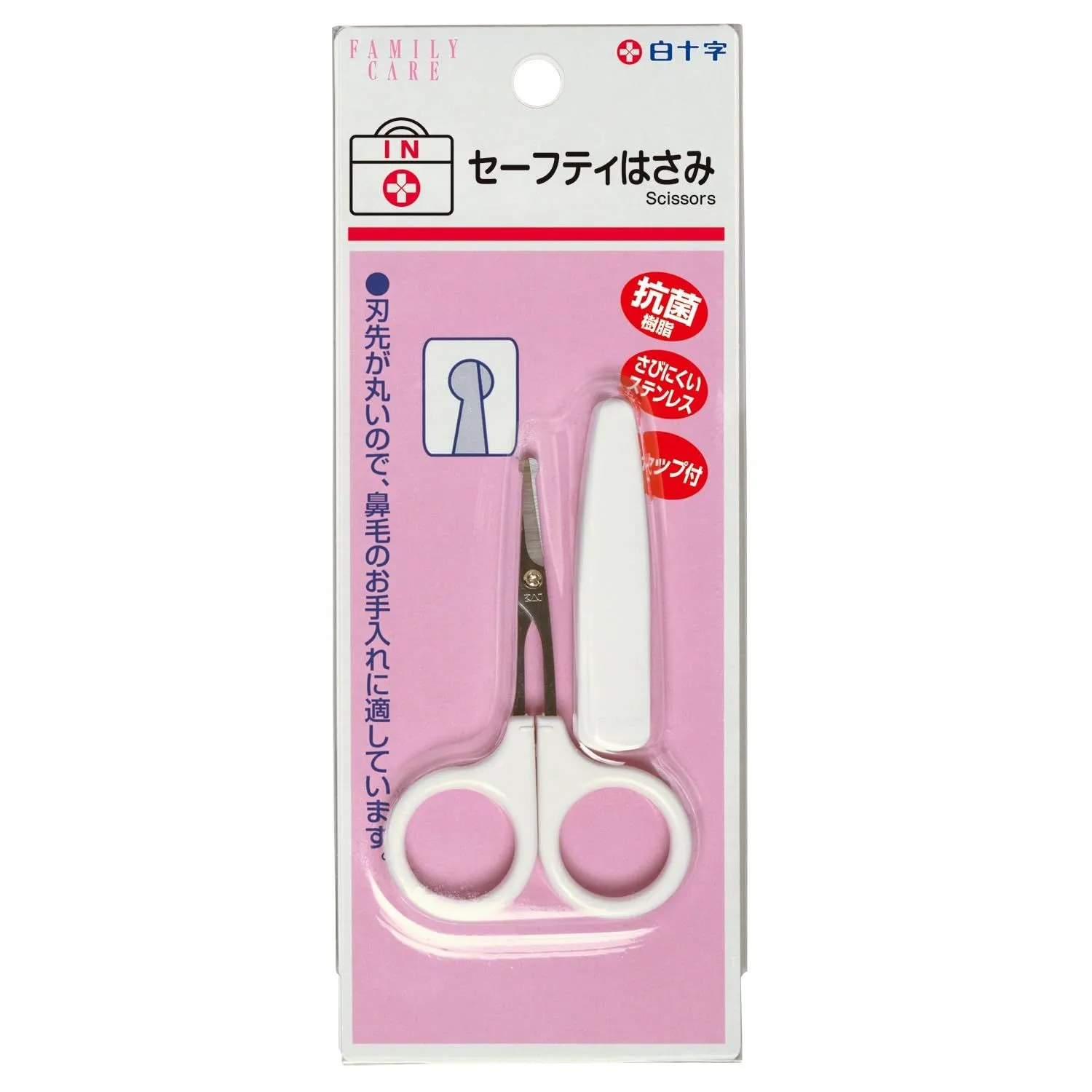 白十字 日本製 セーフティはさみ キャップ付 1個 抗菌 鼻のお手入れに