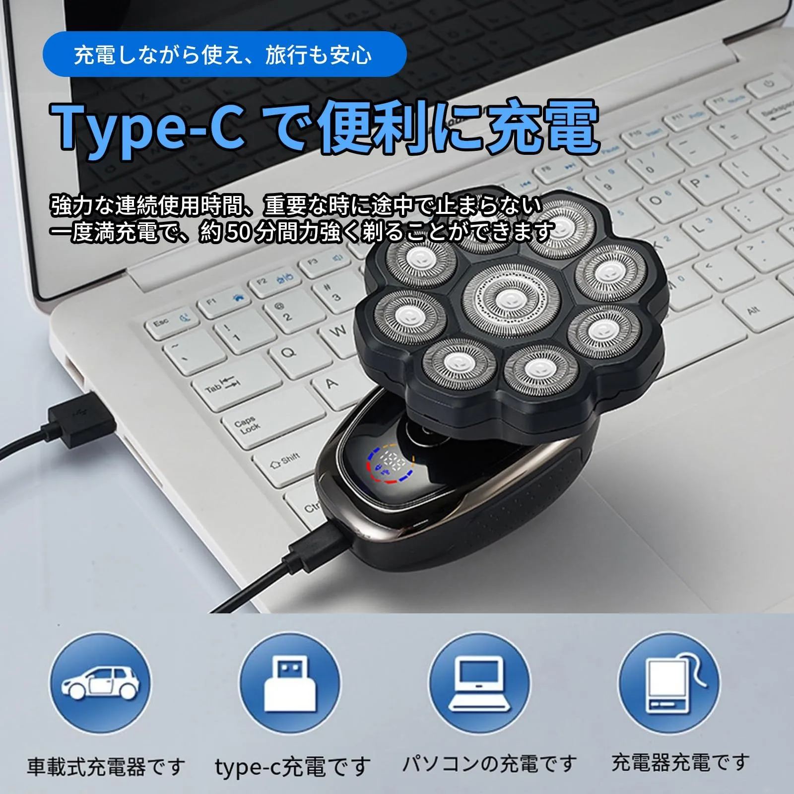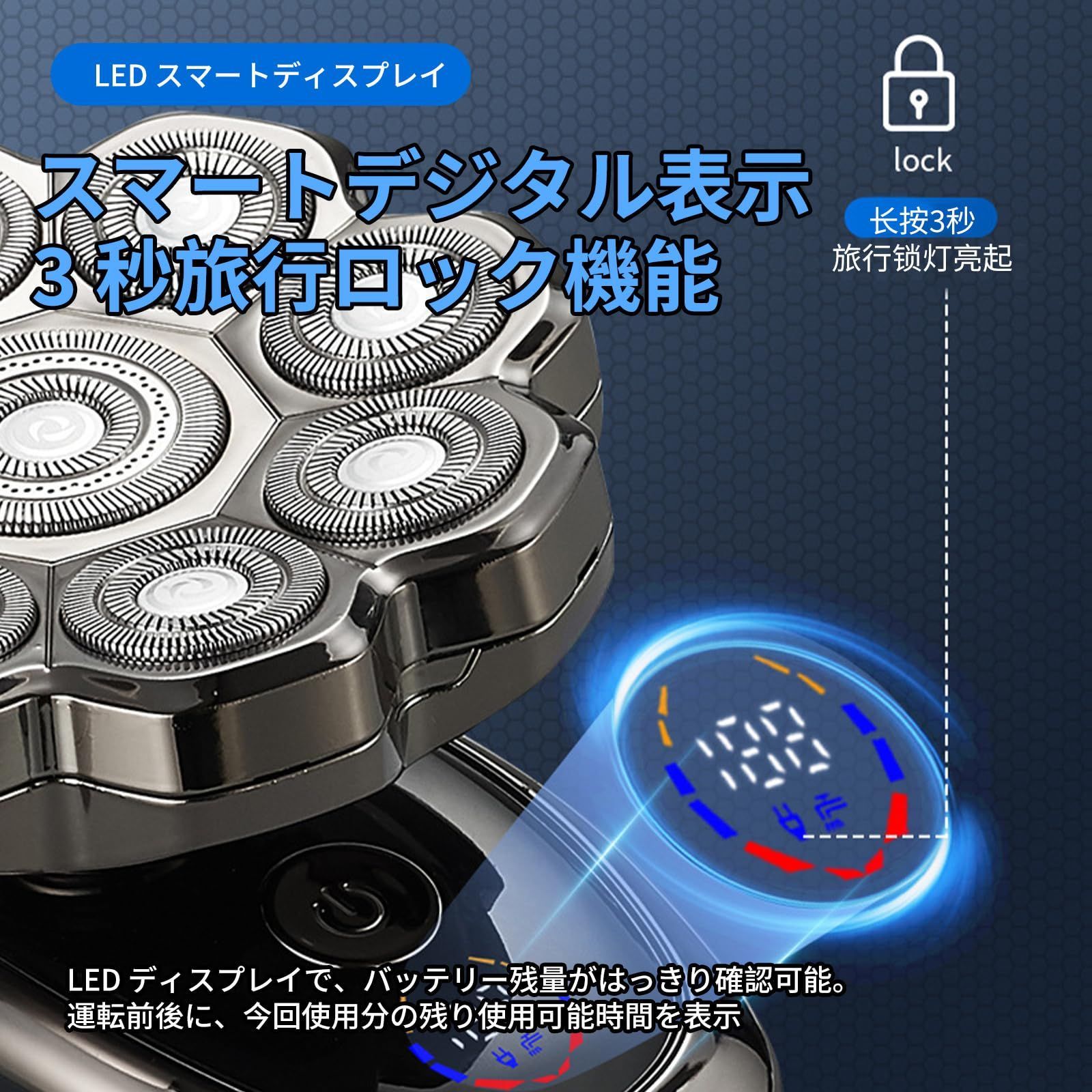スキンヘッド用シェーバー スキンヘッド メンズ 電動シェーバー 電気シェーバー 男性用 全身防水 乾湿両用 回転 ひげそり マグネット式 LEDディスプレイ 充電式 父の日 プレゼント ギフト