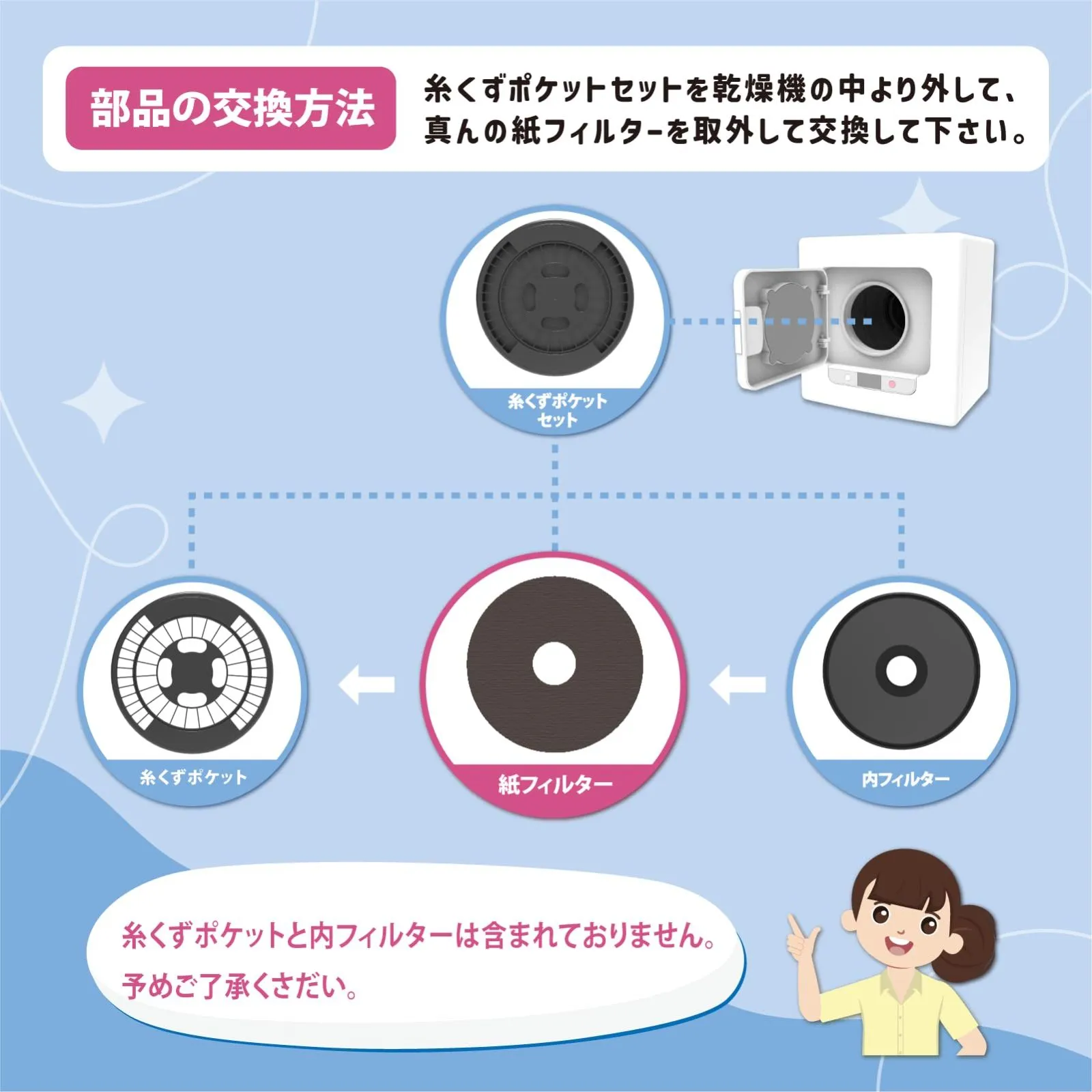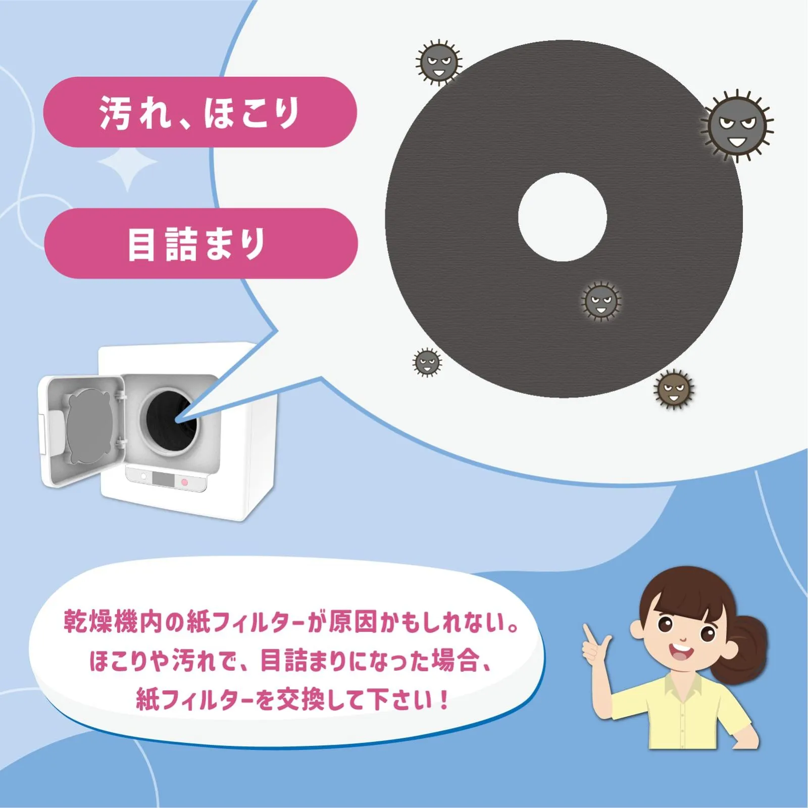 【乾燥に肝心】衣類乾燥機の乾燥時間が長いなぁ~と感じをする時がありますか?その感じがあった時、乾燥機の中の紙フィルターの交換をお勧めします。使い捨てタイプですので、毎回ご利用後ご交換ください。