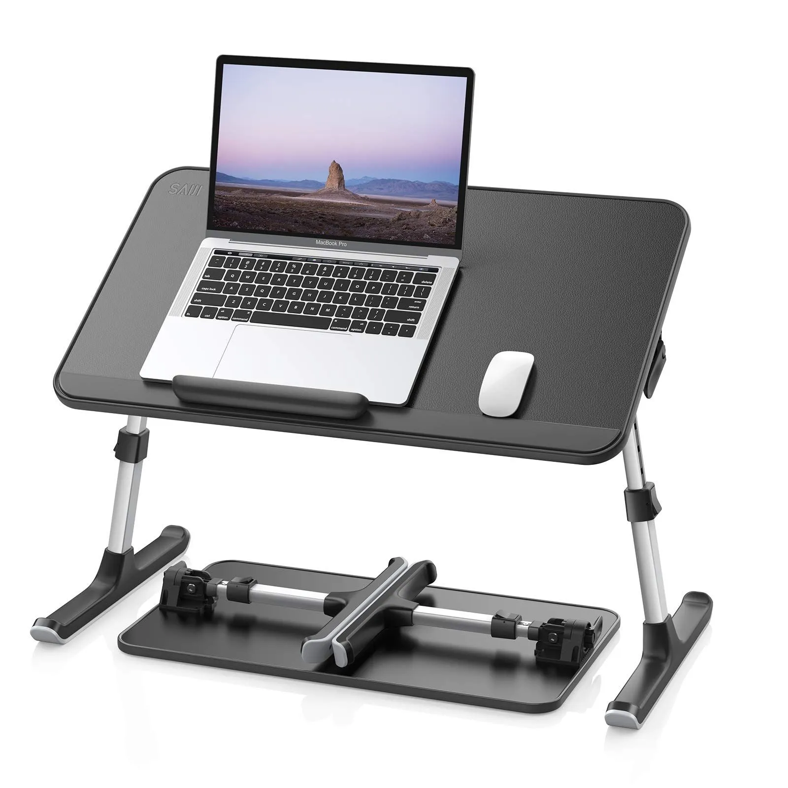 SAIJI ノートパソコンスタンド PCスタンド 折りたたみテーブル ローテーブル ミニテーブル ベッドテーブル 高さ・角度 調整 耐荷重40kg 軽量 勉強机 卓上 食事 一人暮らし (AL30ブラック,52*30*9cm)