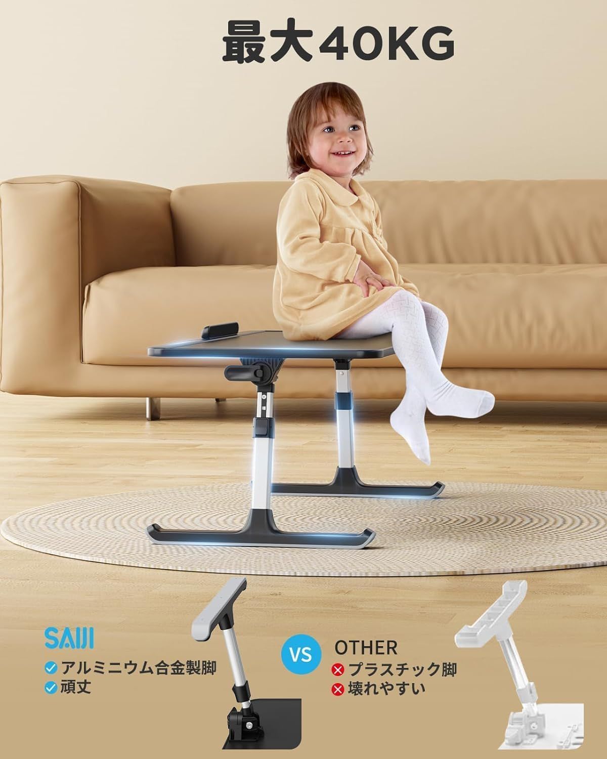 【デスク仕様】サイズ:52*30*9cm。テーブル本体重量:1.75kg。耐荷重:約40kg。パッケージ内容: SAIJI AL30 テーブル本体、日本語取扱説明書