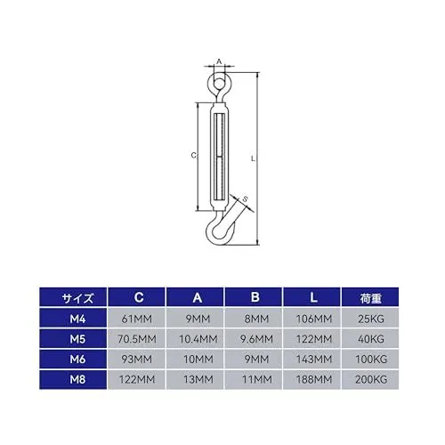 HFS(R) 304ステンレス ターンバックル フック テンショナー ワイヤーロ