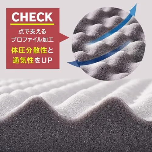 【点で支えるプロファイル加工】体圧分散性と通気性をUP。体の接地面積が増え、高い体圧分散性を実現。