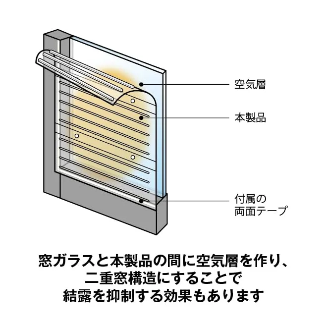 二重窓構造を作って断熱効果UP 窓ガラスと本製品の間に空気層を作り、二重窓構造にすることで断熱効果を上げます。
