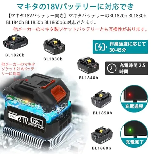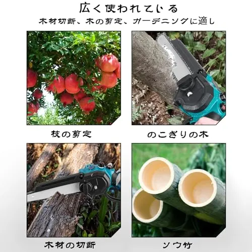【大容量着脱式電池2個】小型 チェーンソーは21 V、2個3000mAhリチウム電池から電力を供給する。AAAグレードの高品質バッテリー、過熱/過充電/防爆保護、安定したバッテリー性能、安全で安心して使用できます。2つのバッテリーを交互に使用することで、ニーズを十分に満たすことができます。(マキタ18V純正バッテリーに対応していますが、マキタの充電器および他社製18Vシリーズのバッテリーには対応していません)当製品は以下の牧田バッテリーモデルにのみ対応しています:BL1830、BL1830B、BL1840、BL1840B、BL1850、BL1850B、BL1860、BL1860B。