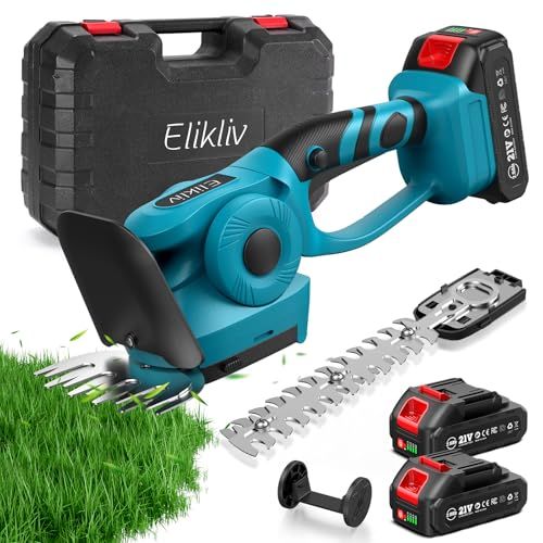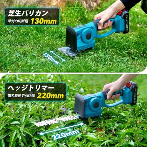 Elikliv 芝刈り機 電動 芝生バリカン 充電式ヘッジトリマー 剪定トリマー コードレス 1台2役 トリマー刈幅220mm 最大切断径7mm バリカン刈幅130mm 両刃駆動 刈込高さ調整15-25mm 二重安全ロック 軽量 生垣 園芸 植木 ガーデン★m
