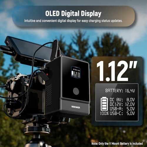 NEEWER BASICS Vマウントバッテリー PS099E 6800mAh/99Wh ミニVロック/OLEDディスプレイ/Dタップ/タイプCケーブル付き PD65W USB C 急速充電 BP/USB A/DC出力 ビデオカメラモニター撮影用★m