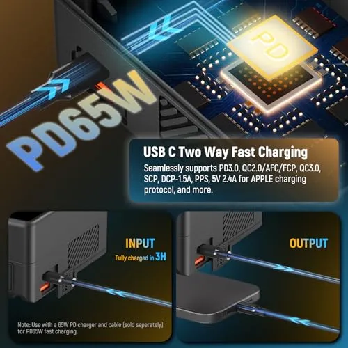 【PD65W双方向急速充電】USB Cポートは、スマホ、タブレット、ラップトップに65W双方向PD急速充電を提供します。コンパチブル iPhone 16/15/14/13 Pro Max Plus Mini S22 S23 S24 Ultra Mate 60 Pro P60 P40 Pro Google Pixel 8 7 Pro。Dタップケーブルが付属し、コンパチブル Smallrig NEEWER PS050E PS099E PS099EP PS150E Vロックバッテリー。Vマウントバッテリーは、16.8V Dタップ充電器またはPD急速充電GaN急速充電器セット(別売)を使用して3時間で完全充電します。