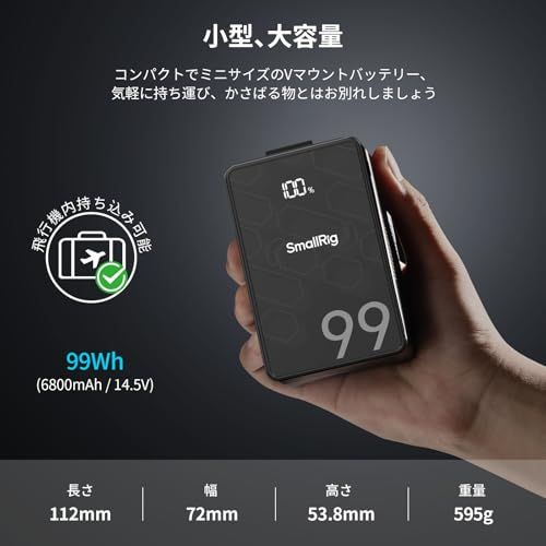 SmallRig Vマウントバッテリー VB99 SE 99Wh / 6800mAh ミニVマウントバッテリー PD 65W USB-C急速充電 D-TAP USB-A デュアルDCポート OLEDスクリーン カメラ カムコーダー モニター ビデオライト用★m