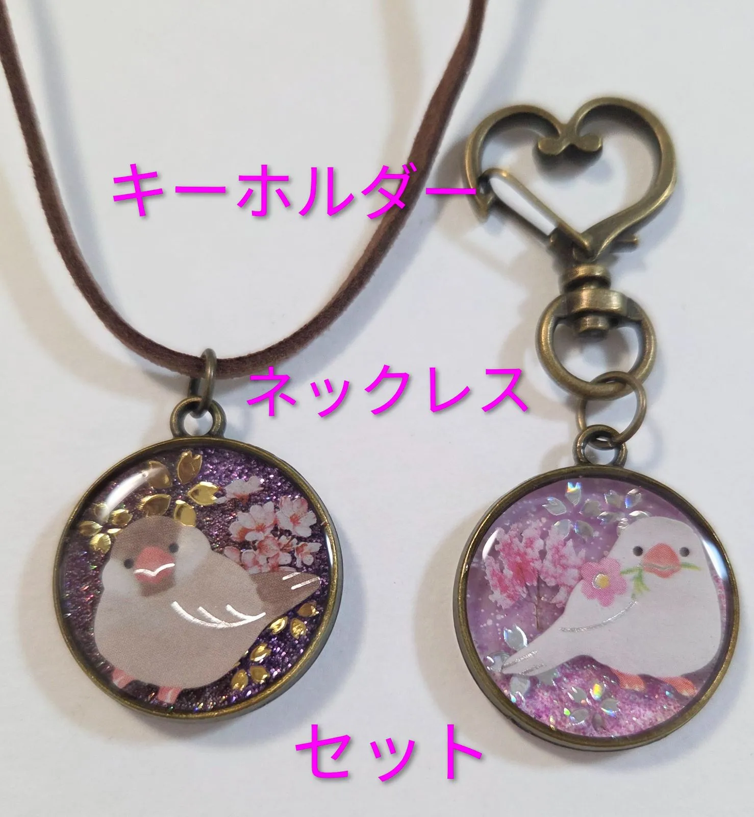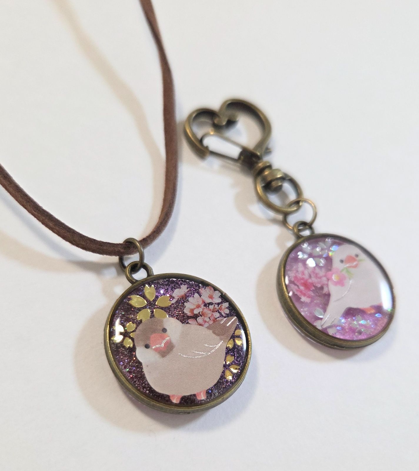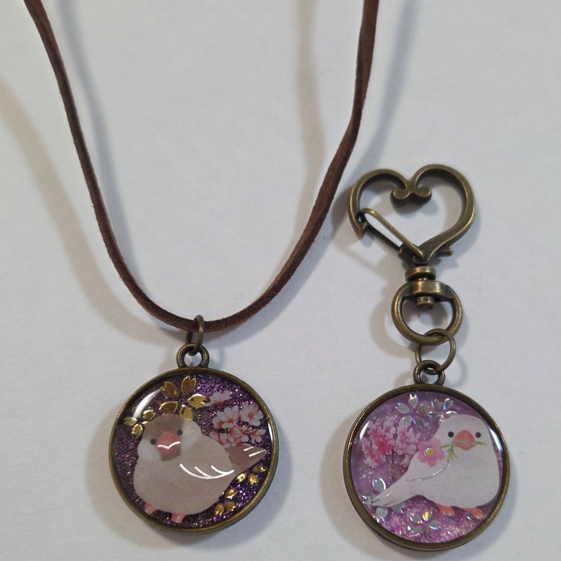 文鳥ちゃんお得2点セット✨ 文鳥ネックレス 文鳥キーホルダー キーホルダーとネックレスの2点セット 文鳥グッズ 文鳥アクセサリー 文鳥ペンダント シナモン文鳥 白文鳥 文鳥ストラップ 鳥グッズ 鳥アクセサリー
