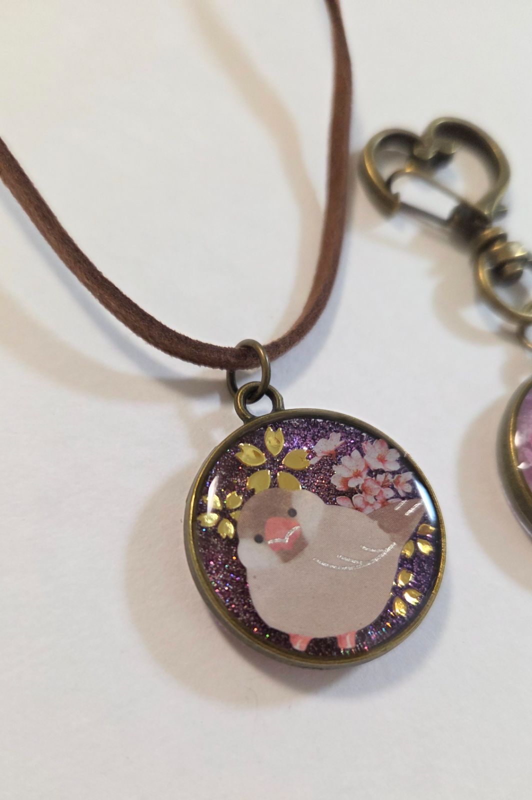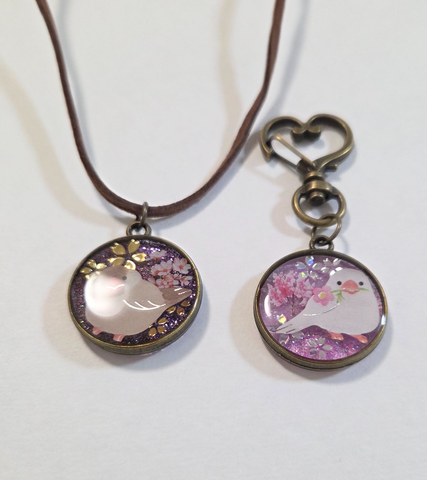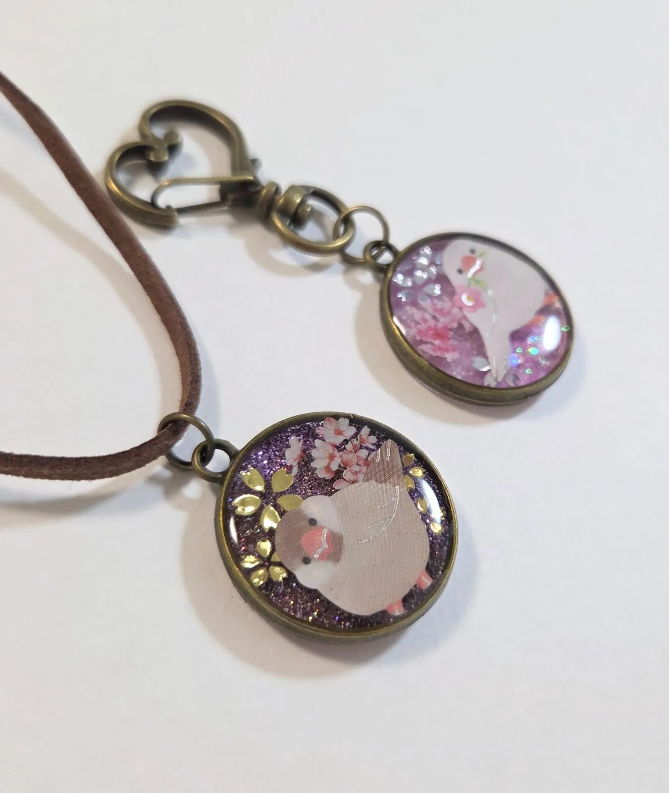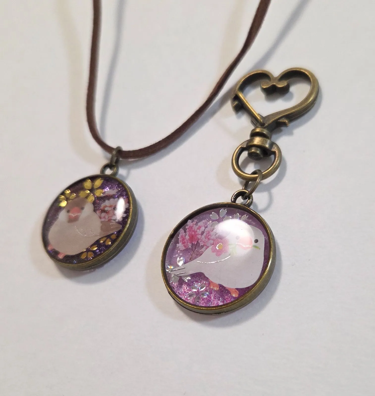 文鳥ちゃんお得2点セット✨ 文鳥ネックレス 文鳥キーホルダー キーホルダーとネックレスの2点セット 文鳥グッズ 文鳥アクセサリー 文鳥ペンダント シナモン文鳥 白文鳥 文鳥ストラップ 鳥グッズ 鳥アクセサリー