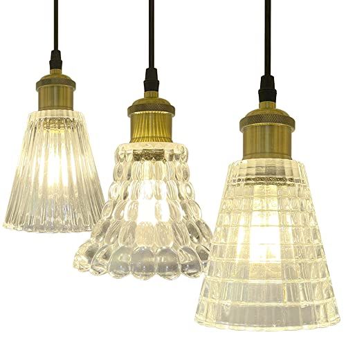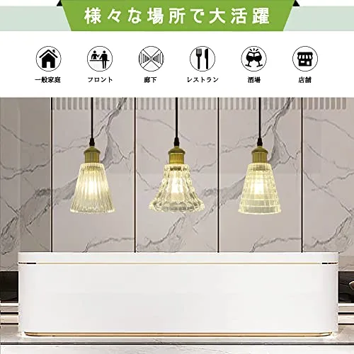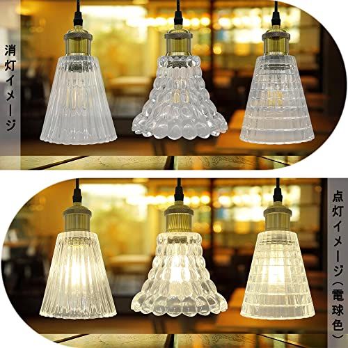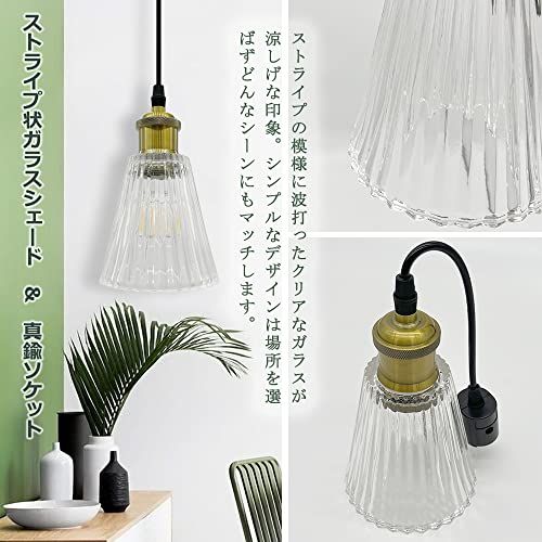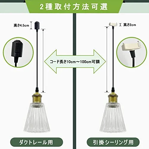 ペンダントライト ガラス 北欧 レトロ アンティーク おしゃれ 口金E26 ダクトレール用 吊り下げライト ストライプ ガラスシェード ダイニング リビング 居間 食卓 玄関 廊下 カフェー (ダクトレール用・昼光色LED電球付, Aタイプ)p