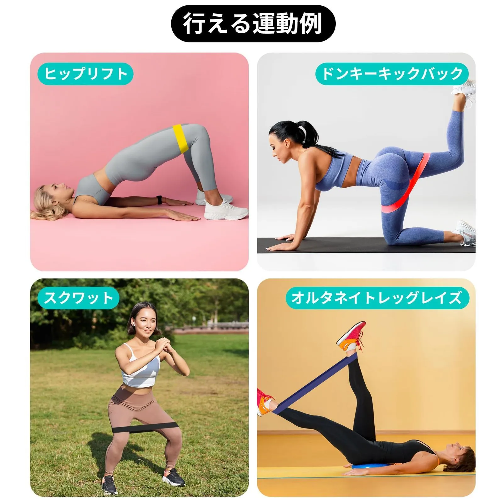 【5から59kgまで負荷が変えられます】5種類の負荷のトレーニングバンドがあり、組み合わせて自分にあった負荷を調節できます。幅が広く負荷をかけた時の安定感が抜群です。ゴムバンドは自在に伸縮できますので、筋トレ、体幹トレ、ストレッチ、美尻など幅広く活用できます。ちなみに、普段鍛えられなかった内転筋はスクワットでトレーニングできます。