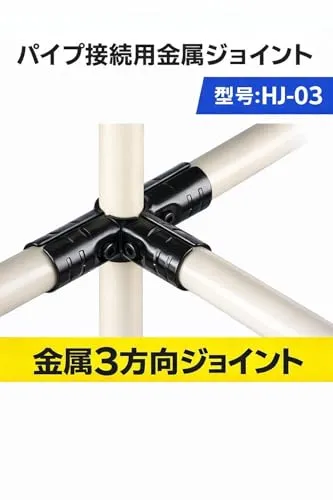 「商品状態」新品、未使用「商品情報 (新品の場合) 」 「主な仕様」HJ3 90° イレクターパイプ アタッチメント メタルジョイント 純正 互換品 です。組み立てやすい構造で、付属 M6 ボルト を締めるだけで簡単に取り付け可能で、DIY棚・ 車内 ラック ・ 作業台 など 幅広い用途に最適です。