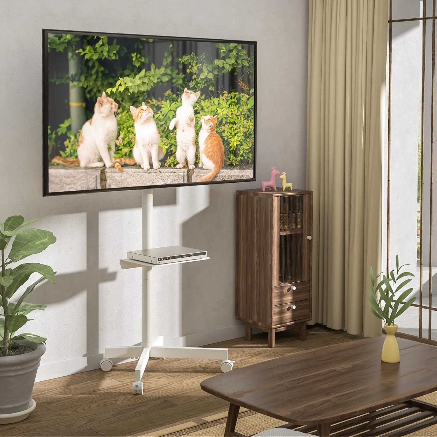 テレビスタンド キャスター付き テレビスタンド ハイタイプ/ロータイプ 23~55型 テレビ用スタンド壁掛け 上下傾斜 tvスタンド VESA40x40 ㎝まで 耐荷重40 KG 家用 会社用 ホワイト 1