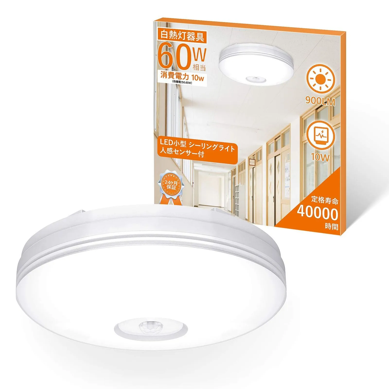 【迅速発送】aurogeek人感センサー ライト LED 小型 人感センサー付 照明器具 シーリング 廊下灯 天井照明 内玄関 簡単取付 昼白色 900lm 単個