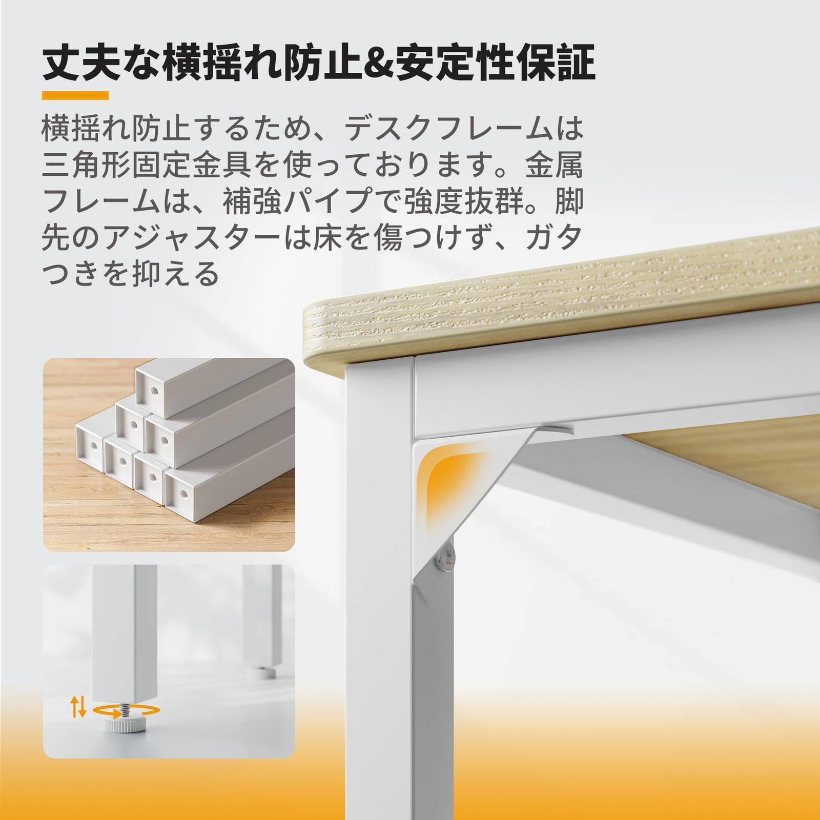 【安定性&耐用性】横揺れ防止するため、デスクフレームは三角形固定金具を使っております。天板は水・熱・傷・汚