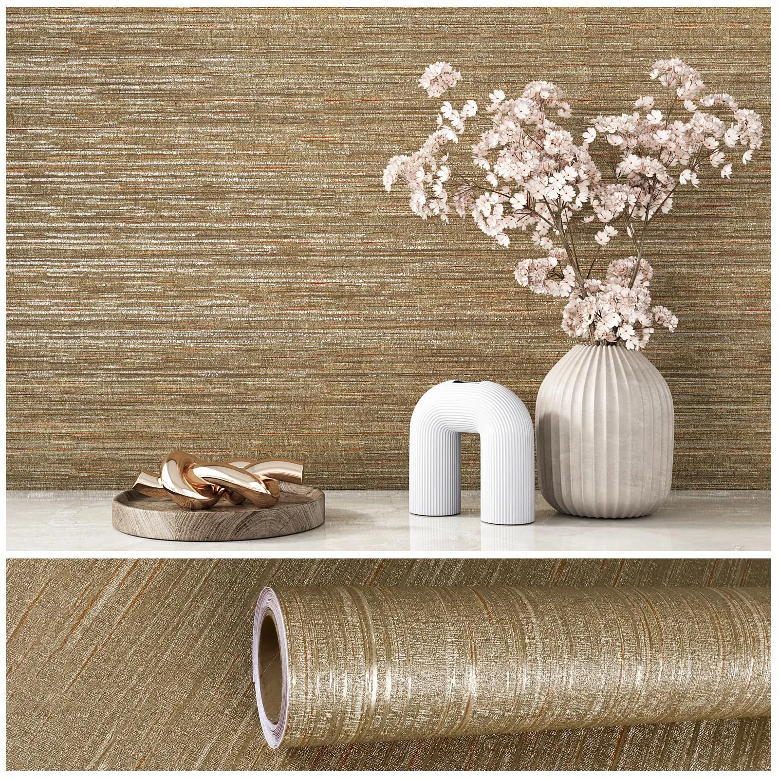 VEELIKE 壁紙シール 織物調 壁紙 クロス ふすま紙 襖リメイクシート 織物調 ライトブラウン 幅40X300cm リネン壁紙 カッティングシート ウォールステッカー シールタイプ のり付き はがせる テーブルリメイクシート 防水 耐熱 難燃 補修 賃貸ok 剥がせる 部屋 キッチン トイレ 壁腰 玄関 ドア 扉 食器棚 天板 家具 DIY 和バタン 和風 和室 北欧 インテリア