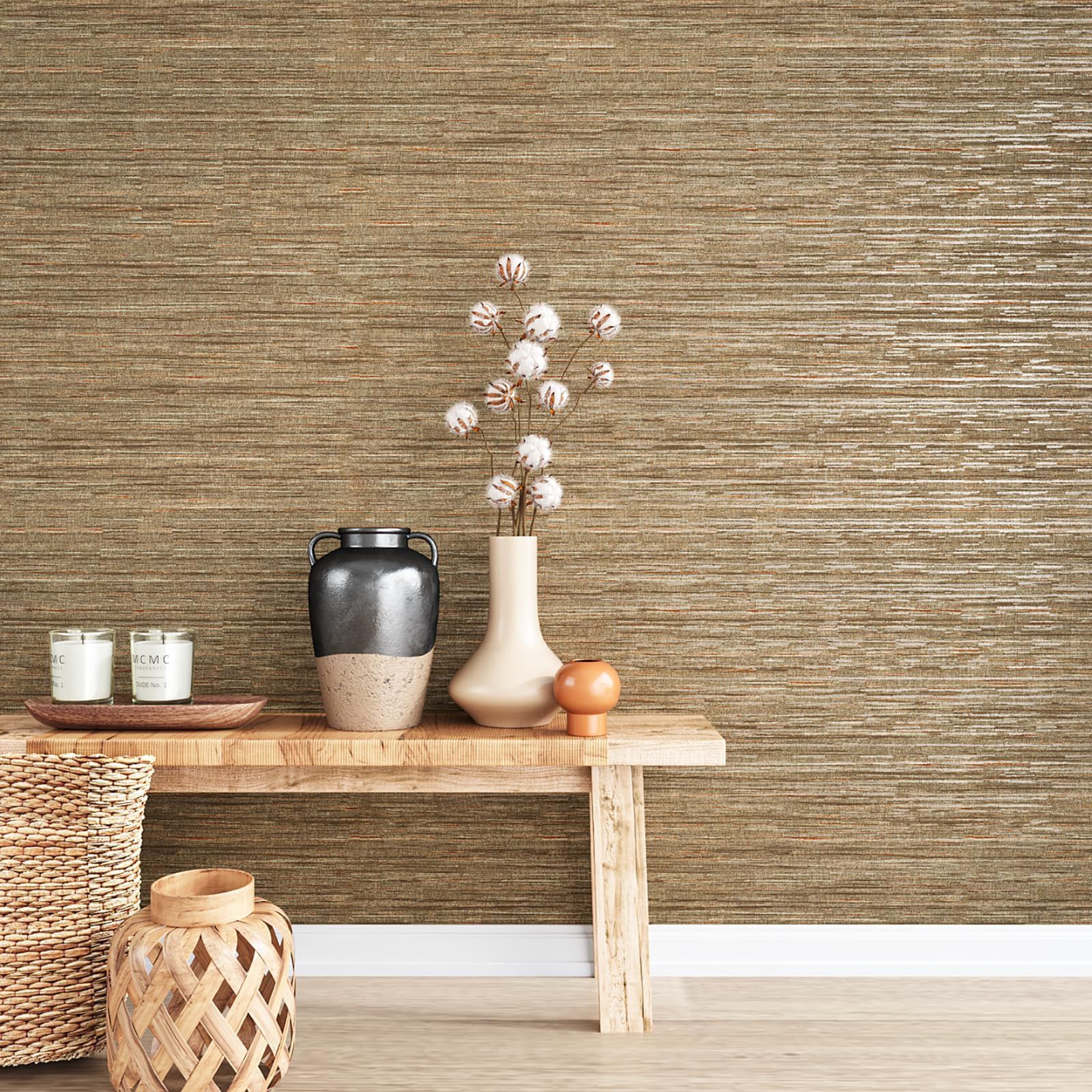 ●品名:壁紙シール 織物調 ライトブラウン 茶色 エンボス加工タイプ