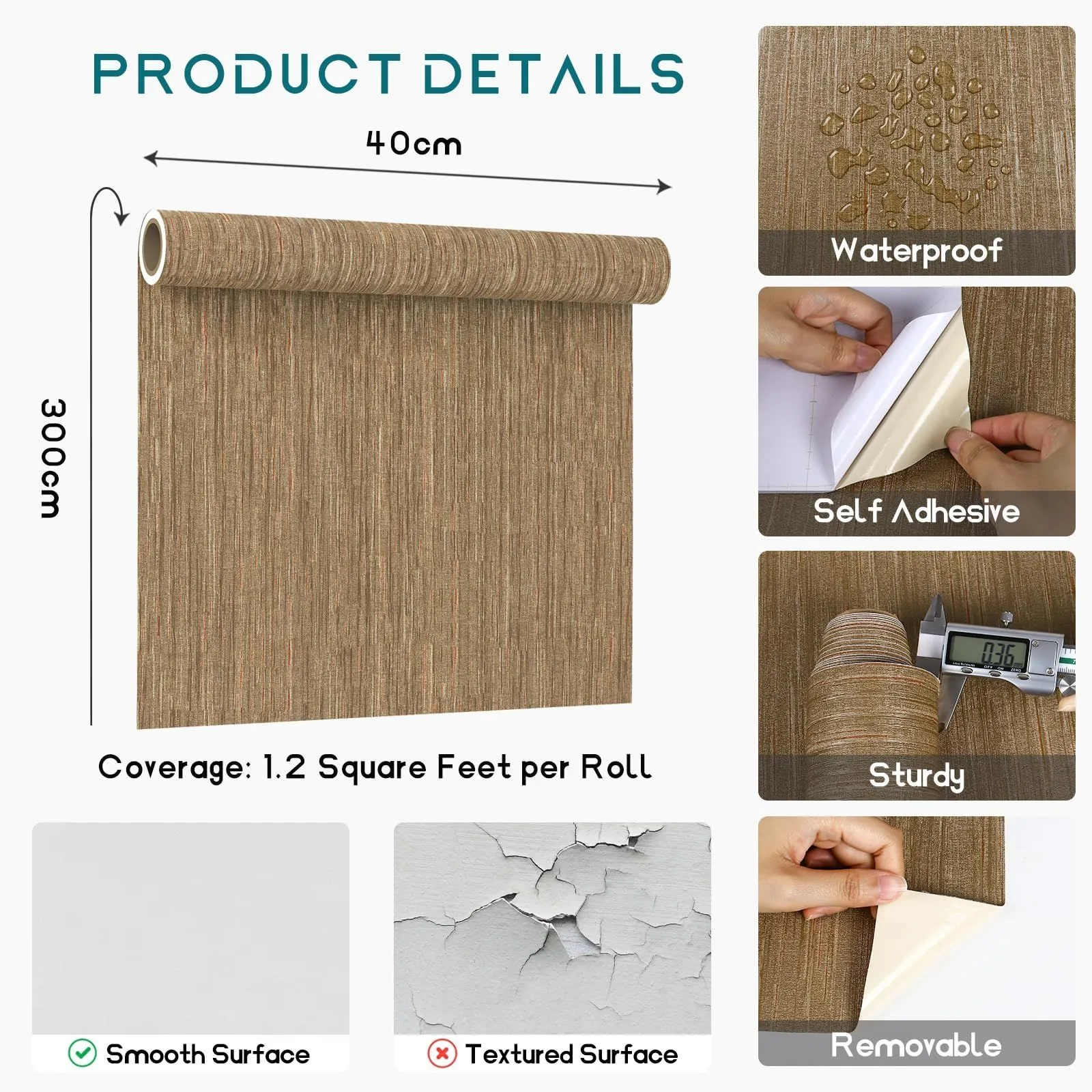【貼るだけで簡単にリメイク】: 織物調 シール壁紙 なので、接着剤を塗る作業がいらず、台紙をはがして貼り付けるだけで 簡単にお部屋・家具の雰囲気チェンジができます。特に旧家具の 模様替え に大人気!裏面は目盛り付きでお好きな長さにカッティングして活用できます。
