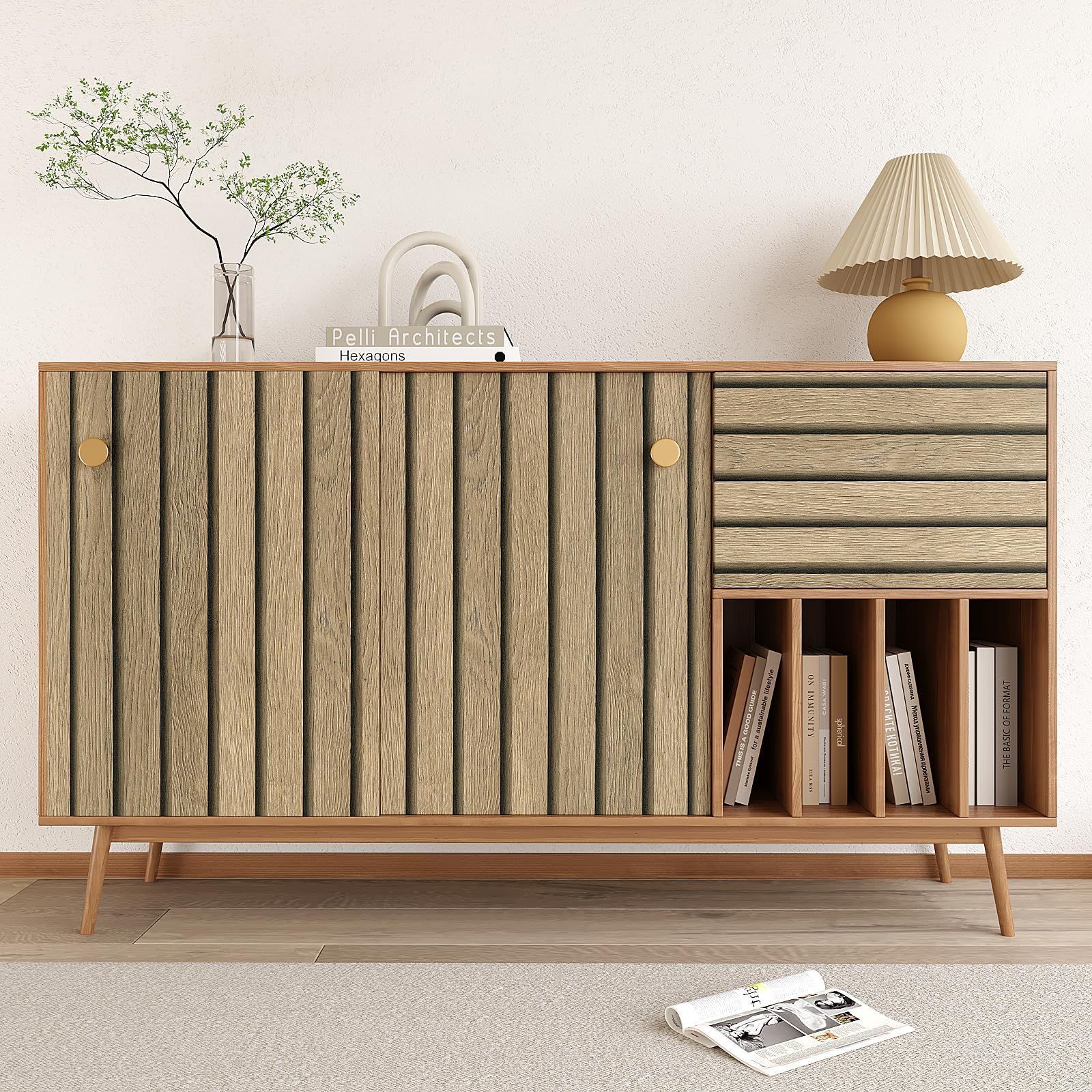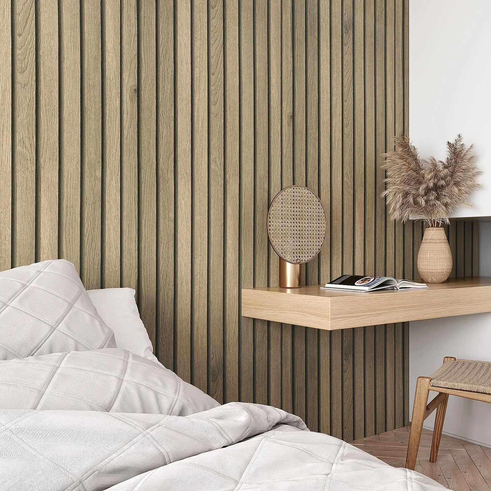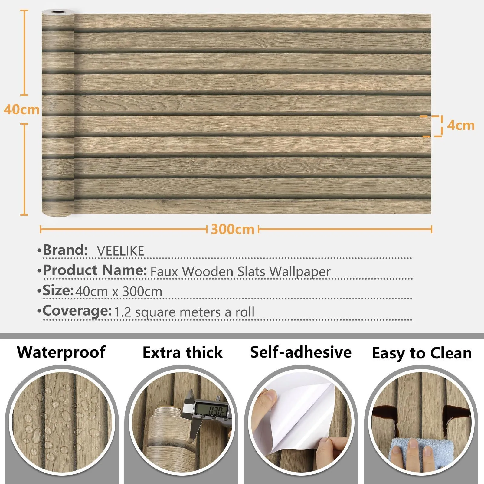 VEELIKE 壁紙シール 木目 木目シート スラットウォール リメイクシート カッティングシート ウォールステッカー リフォーム リメイク 補修 剥がせる壁紙クロス ふすま紙 シールタイプ のり付き 賃貸ok 原状回復 表面強化 耐摩擦 撥水 防水 耐熱 キッチン テーブルに貼るシート 部屋 リビング トイレ 洗面台 食器棚 天板 襖 まさめ おしゃれ 北欧風 幅40x300cm