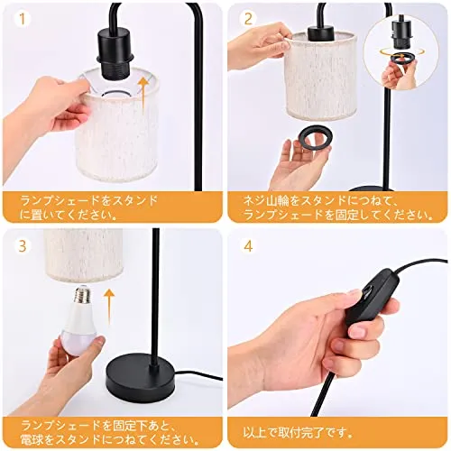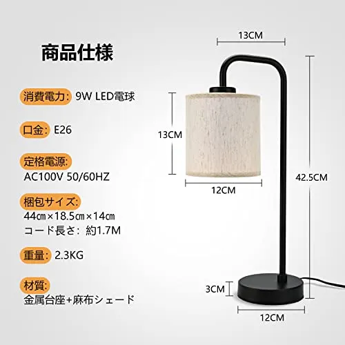 サイズ:全体高さ42cm 、ベース直径12cm、素材:金属ベース布シェード、口金:E26 (電球は含まれておりません)、商品内容:本体電源線(押しボタンスイッチ )口金:E26(LED電球付属)