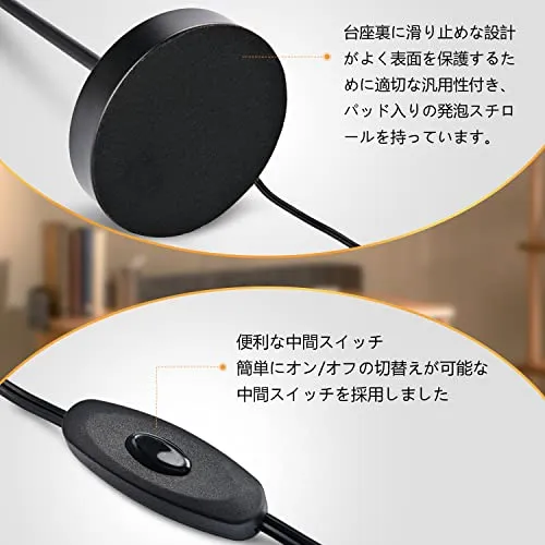 布シェード:外側は布、内部に一重白いpvcを包まられるので、光の均一性をより確報します。透光のデザイン。金属ベース:メッキによって、安定性がいいです。