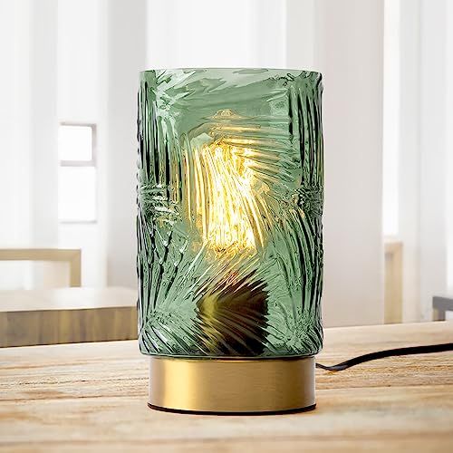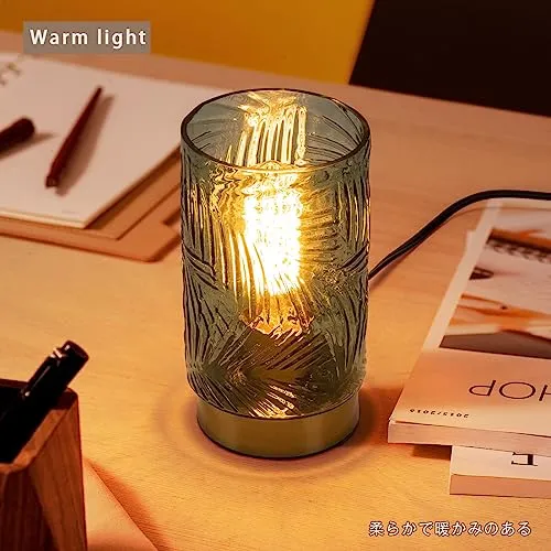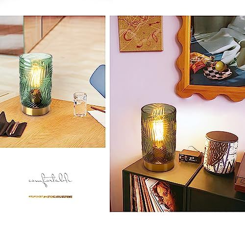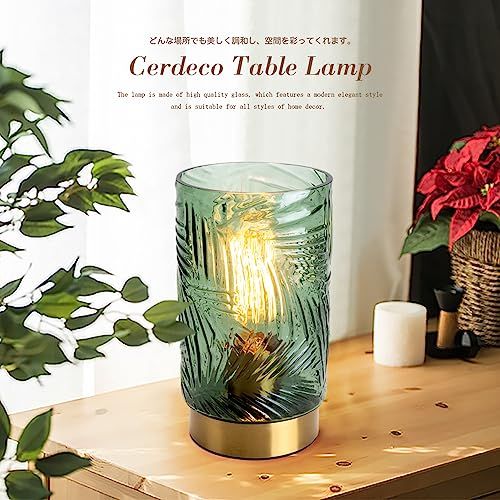 Cerdeco 独特な樹木の葉柄 アンティーク調テーブルランプ ガラス製 ベッドサイド テーブルライト インテリア照明 デスクライト 雰囲気作り 間接照明 LED対応 寝室 レトロ 授乳 ライト ギフト最適 おしゃれ 空間を彩る TBL19B (グリーン)p