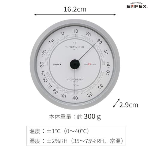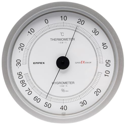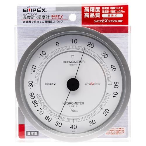 エンペックス(Empex) 温度湿度計 スーパーEX 温湿度計 壁掛け用 日本製 シャインシルバー EX-2747 16.2x16.2x2.9cmp