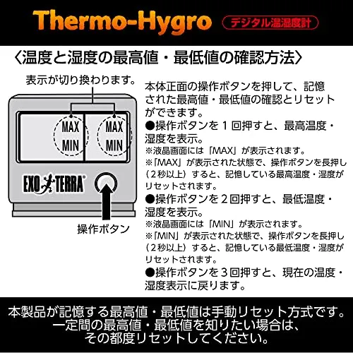 エキゾテラ GEX EXOTERRA デジタル温湿度計 PT2470 温度・湿度の最高値と最低値のメモリー機能付き 見やすいデジタル表示p