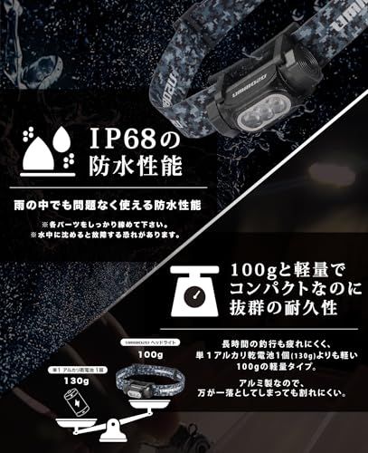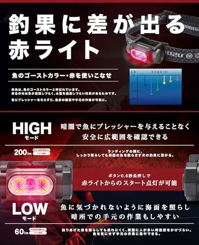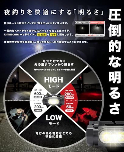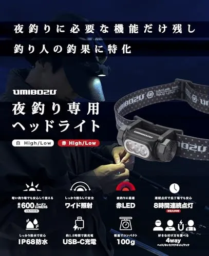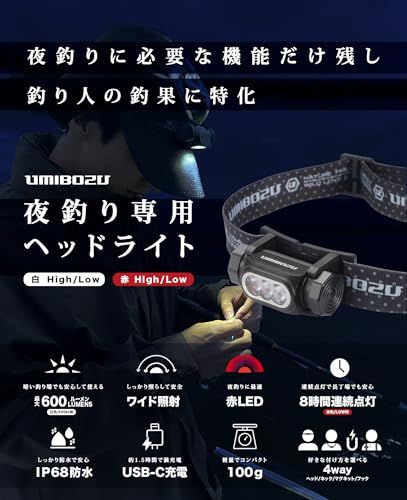 Umibozu(ウミボウズ) ヘッドライト 釣り 充電式 LED 白ライト 赤ライト (ネイビー, 1100mAh)p