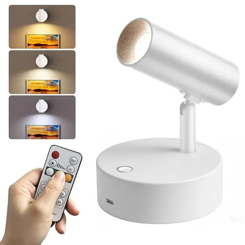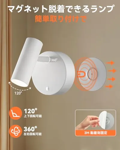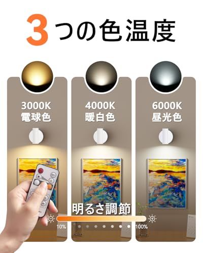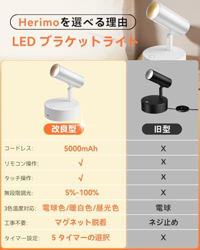 Herimo LEDスポットライト ブラケットライト Tpye-C充電式ライト【3光色+無段階輝度】マグネット式 リモコン操作&タッチ操作 タイマ-設定 間接照明 絵画照明 アッパーライト 補助灯 停電用 読書灯 (ホワイト)p