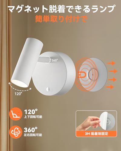 【簡単に設置・360回転調整】ブラケットの固定は 両面テープ or ネジ の2択。マグネットがしっかりしててがっちり付いてくれてるので角度も調節しやすいし明るさもバッチリでめちゃくちゃ便利です。見た目はオシャレ、軽くてコンパクト!