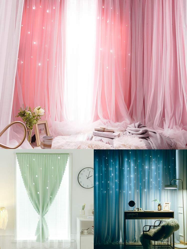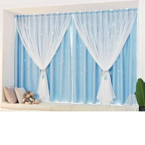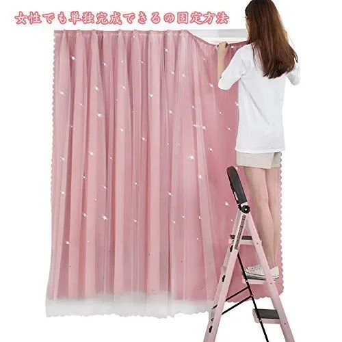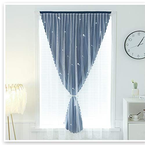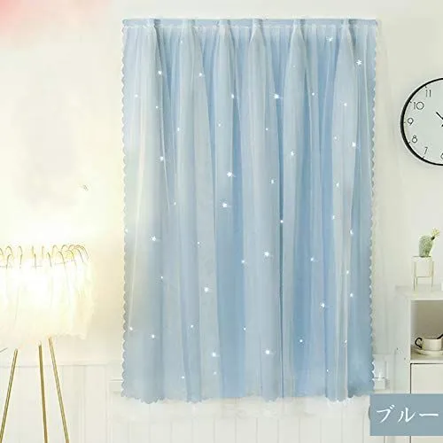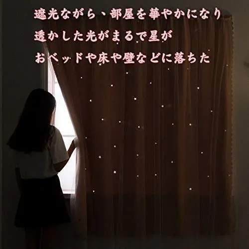 Senyumei カーテン二重 姫系遮光カーテン 透かし彫り星柄 おしゃれ かわいい マジックテープ掛け シェードカーテン1枚幅100cm丈120cm
