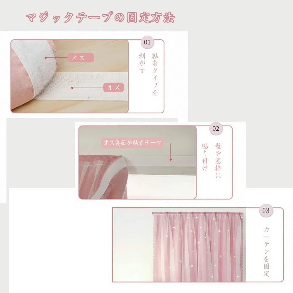 【迅速発送】Senyumei カーテン二重 姫系遮光カーテン 透かし彫り星柄 おしゃれ かわいい マジックテープ掛け シェードカーテン1枚幅100cm丈120cm