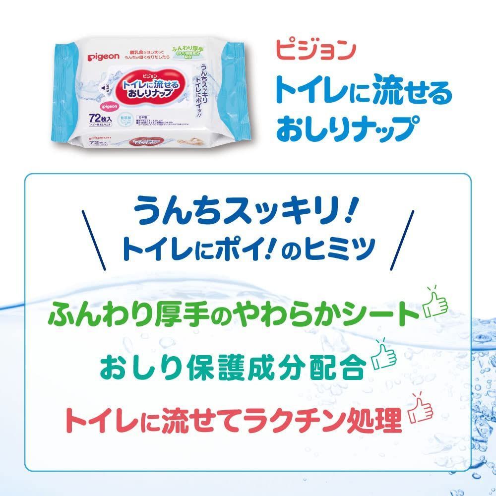 【迅速発送】ピジョン 【おしりふき】 Pigeon トイレに流せるおしりナップ ふんわり厚手 72枚×2パック×12個(1728枚)ケース販売