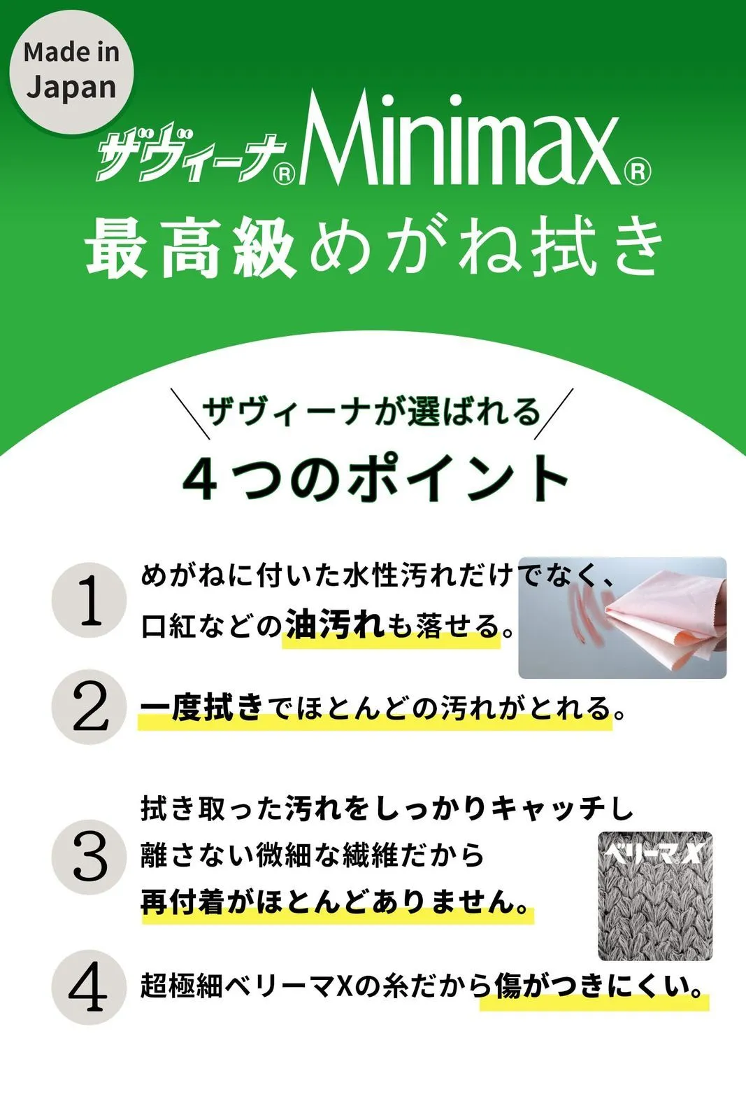 ●柔らかな繊維でレンズに傷をつけず、ホコリや汚れをきれいに拭き取ることができる高性能クリーニングクロス「ザヴィーナ ミニマックス」。
