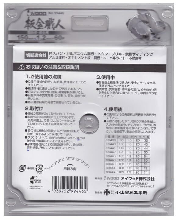 アイウッド 板金職人 板金用チップソー 150mm×1.2×60P ※取寄品 99446★m