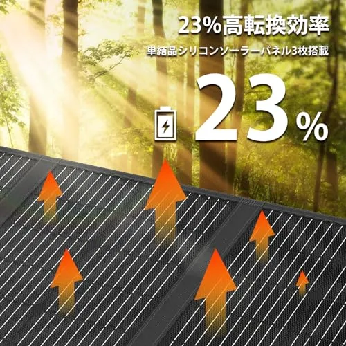 【23%高転換効率・高効充電】ERICSITY ソーラーパネル 100Wは高純度単結晶シリコンを採用し、ソーラーパネルを3枚搭載し、太陽光を最大限利用できます。規則正しく並んでいる単結晶セルで電力ロスが少なくて安定して優れた性能が備えます。転換効率は一般的な太陽光パネルより向上させて最高23%に達し、充電時間をさらに短縮します。