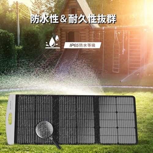 【IP65レベル・アウトドア対策】ERICSITY ソーラーパネル 充電器は防水性能はIP65防水等級となっており、通常の小雨や小雪にはIP65規格(電気機械器具の保護等級)に適合していますが、豪雨や浸水などには完全防水ではありませんので、耐えられません。防水防塵性能があり、アウトドアで安心して使用していただけます。耐久性があり、ソーラーパネルの寿命を延ばすことができます。