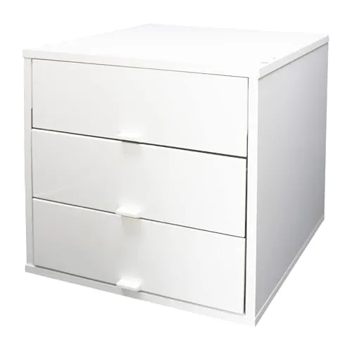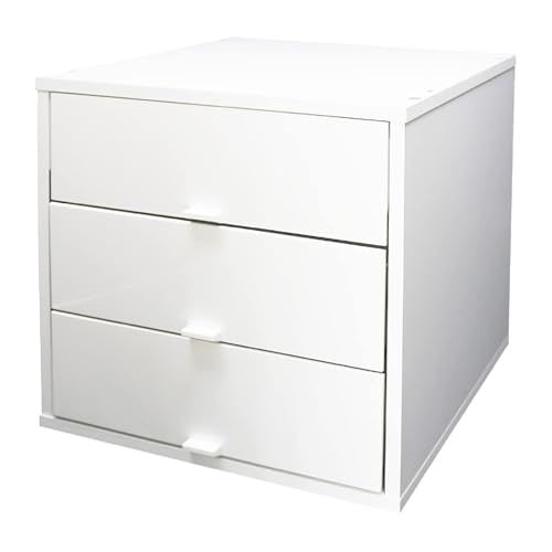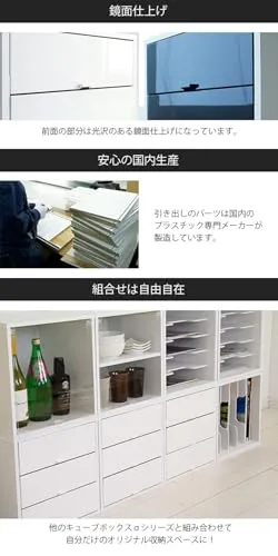キューブボックスα 3段引き出しタイプ カラーボックス 引き出し 収納 鏡面 スタッキングシェルフ スタッキングボックス 木製 A4 卓上 ミニチェスト 収納ボックス★m
