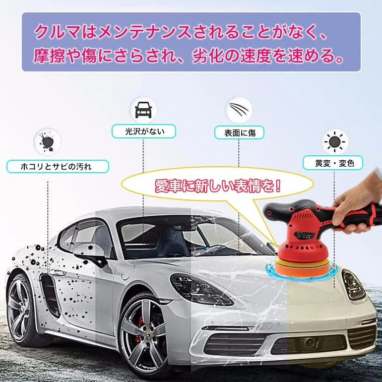【ワイヤレス・軽量・低騒音】ポリッシャーは、電源ケーブルを接続する必要がなく、重いケーブルを運ぶ必要もありません。ケーブルがタイヤに絡まる心配もなく、泥で車汚れることもありません。本体の重量はわずか1.02KGで、使用時に疲労しにくく、初心者だけでなく女性や高齢者にも適しています。使用時の騒音は極めて小さく、住宅地でも近隣に迷惑をかけません。