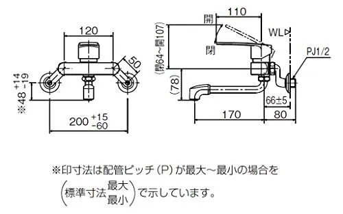 LIXIL(リクシル) INAX キッチン用 壁付 シングルレバー混合水栓 ソフトシングル 断熱キャップ 金属ハンドル RSF-861★m